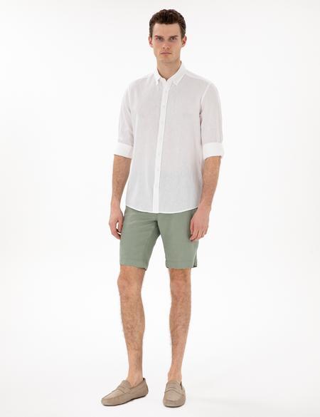 پیراهن آستین بلند پیر کاردین با کد 50303245-VR013 ( Beyaz Keten Karışımlı Regular Fit Uzun Kollu Gömlek )