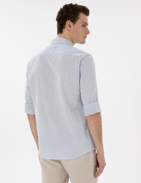 - AçıK MAVI KETEN KARışıMLı REGULAR FIT UZUN KOLLU GöMLEK