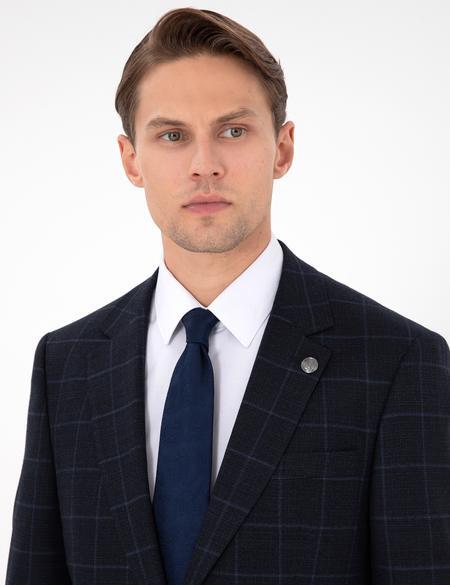 کت و شلوار پیر کاردین با کد 50291964-VR033 ( Lacivert Slim Fit Ekose Yünlü Takım Elbise )
