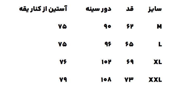قد لباس: برای سایز L، حدود 65 سانتی متر
