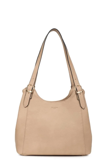این کیف زنانه هگزاگونا Hexagona کد 579739 از نوع 2-strapped shoulder bag - Soft Synthetic بوده و طراحی آن بر پایه سادگی و کارایی انجام شده است. ابعاد کیف زنانه هگزاگونا ۳۴×۱۳٫۵×۳۰ سانتی‌متر است که فضایی ایده‌آل برای وسایل روزمره مانند کیف پول، تلفن همراه، دفترچه، عینک آفتابی و سایر لوازم ضروری فراهم می‌کند. دو بند مستحکم روی شانه، حمل آن را راحت‌تر کرده و فرم عمودی کیف باعث شده ظاهری رسمی‌تر و مرتب‌تر به استایل بدهد. طراحی مدرن و الگوی نرم کیف، تعادلی زیبا میان راحتی و شیک‌بودن ایجاد کرده است.