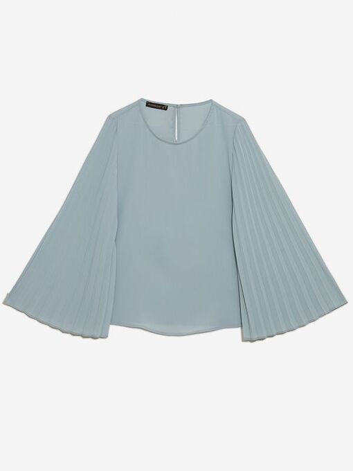 بلوز زنانه کرپ حریر آستین کلوش پلیسه 40103 سبزآبی