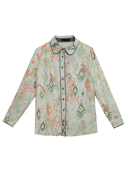 شومیز زنانه طرح دار کرپ الیزه یقه مردانه 30102 سبز