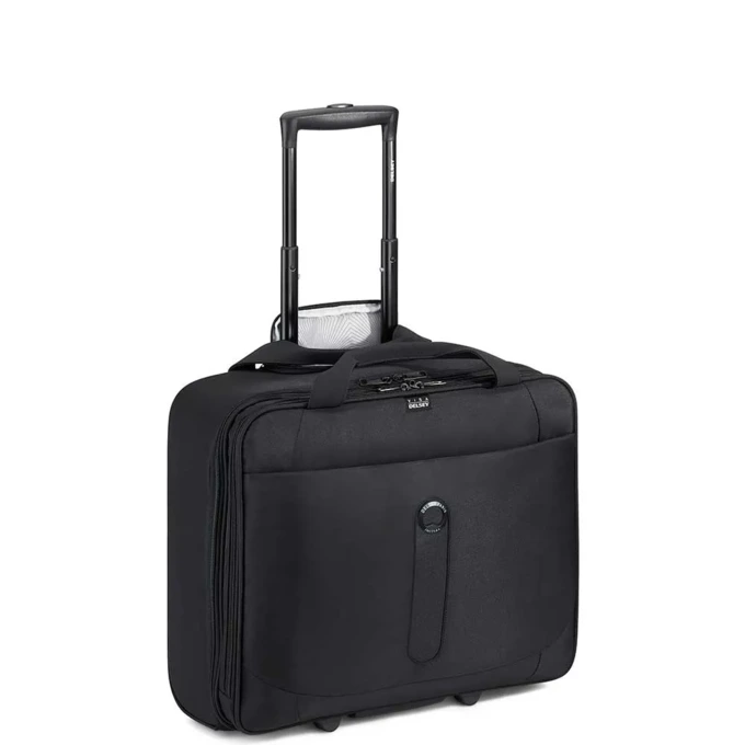 چمدان خلبانی دلسی مدل Datum با رنگ مشکی کلاسیک، ظاهری رسمی و حرفهای دارد و برای افرادی که به استایل کاری اهمیت میدهند انتخابی مناسب است.